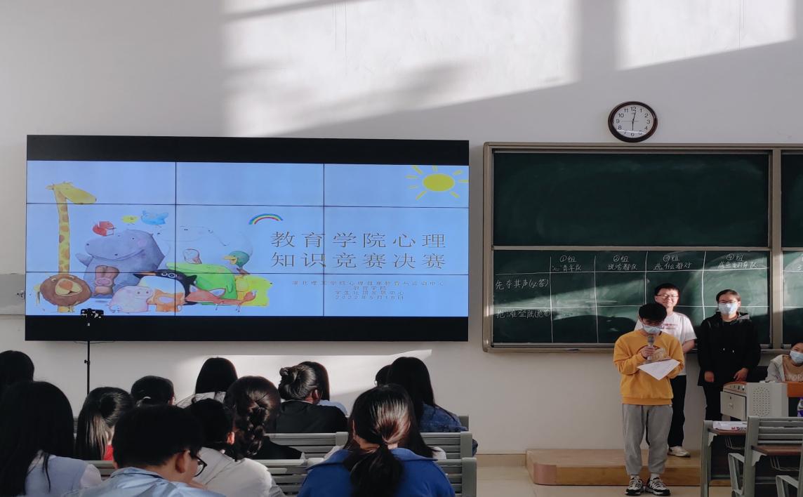 根据学校《关于开展淮北理工学院第一届心理健康月活动的通知》精神,进一步普及心理健康知识,提高新时代大学生的心理健康素质。5月13日晚,教育学院于第1教学楼121教室举办了“第一届大学生心理知识竞赛初赛”。本次活动由校心理健康教育与咨询中心主办,教育学院承办,校心理协会协办,经过多日的报名准备阶段,共有100名学生参加。