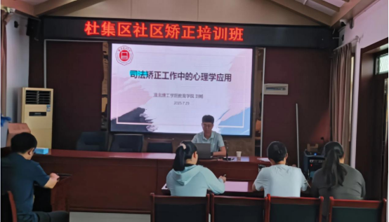 为助力提升社区矫正工作专业化水平,强化基层矫正人员心理矫治与沟通能力,8 月 23 日上午,淮北理工学院刘畅老师受邀为杜集区社区矫正管理局举办的全区社区矫正业务培训班授课,为社区矫正机构负责人、指导员、挂职民警、中队长及业务骨干带来一场聚焦 “司法矫正工作心理学应用”的专题辅导。