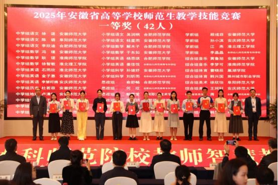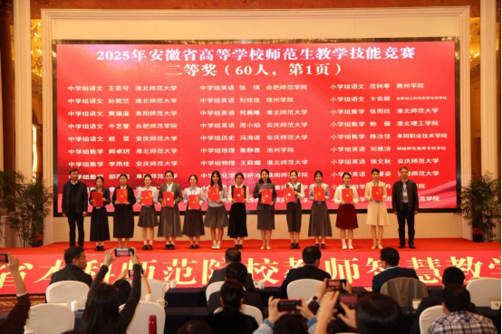 11月2日下午,由安徽省教育厅主办、合肥师范学院承办、安徽省高等院校教师教育合作委员会协办的“2025年安徽省高等学校师范生教学技能大赛”,在合肥师范学院滨湖校区圆满落幕。自7月14日启动筹备至赛事收官,我院历经111天的层层遴选与精心打磨,推荐13个学生(团队)代表学校出征省赛,最终12个参赛主体成功获奖。其中,一等奖2项、二等奖3项、三等奖6项、优胜奖1项。