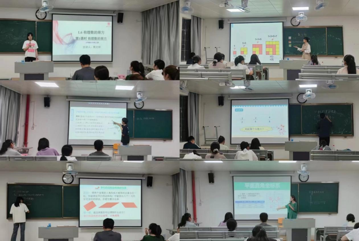 数学组比赛采用2分钟自我介绍与8分钟模拟课堂授课相结合的考核方式。参赛选手们在比赛现场精神饱满,从教学目标、教材分析、学情分析、教学方法、教学重难点、板书书写等方面充满自信地展示着自己的才华和技能。选手们自选内容章节,对小学数学和初中数学课程的多个知识点进行了生动、细致的讲解。