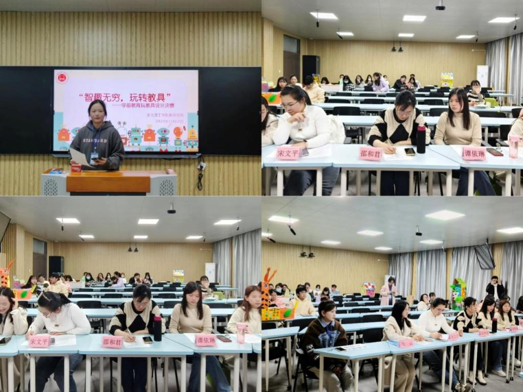 为进一步提高学前教育专业学生自制玩教具的技能,增强学生的动手实践能力和教学探索能力,为将来走上工作岗位打好基础。11月15日下午14:00,教育学院学前教育专业在一教210教室开展了“智趣无穷,玩转教具”比赛。本次比赛由院学生会学术科创部负责人主持,邵和君、马云、宋文平、谭依琳和张亚玲老师担任评委。
