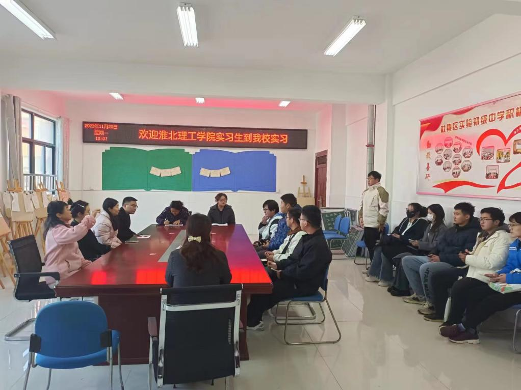 2023年11月20日上午9点,教育学院2022级数学与应用数学专业学生在仇恒方和李姜悦两位老师的带领下来到淮北市杜集区实验初级中学开启教育教学实习工作。在此期间,实习生们将不断汲取经验,努力提升自己。