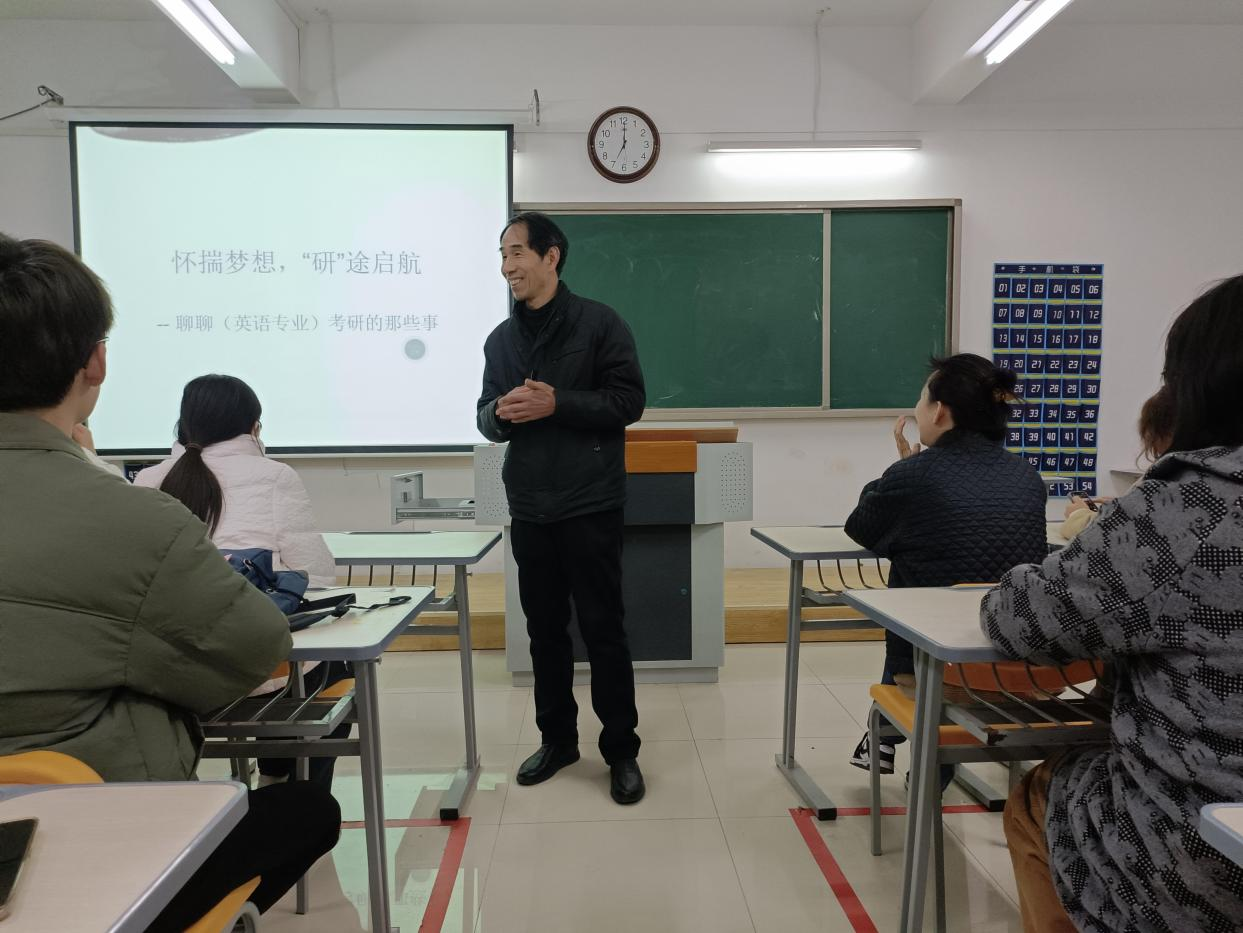 3月13日晚7点,教育学院在二教322教室开展英语专业考研辅导专题讲座。本次讲座面向2021级、2022级普本、2023级专升本学生。讲座由教育学院副院长谢贤德副教授主讲,全体英语教师列席。此次讲座旨在为我校英语专业考研学生提供英语考研的相关信息和备考策略,帮助他们更好地准备即将到来的考研挑战。