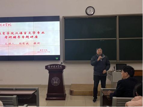 3月13日晚7点,教育学院汉语言文学专业在一教121教室举办了一场考研辅导交流讲座。本次讲座特邀周有斌院长担任主讲人,王家云院长担任主持人,旨在为广大考研学子提供宝贵的备考建议和指导。