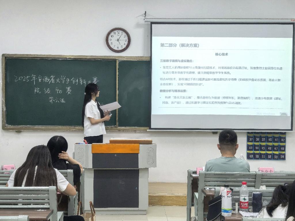 为落实国家创新创业教育部署,提升学生创新实践能力。6月18日,教育学院2025年大学生创新大赛院级初赛在1号教学楼111、112、113、114、115、116等六个教室同步进行,各赛场评委由学院专任教师担任。本次大赛共有89支队伍参加线下比赛。