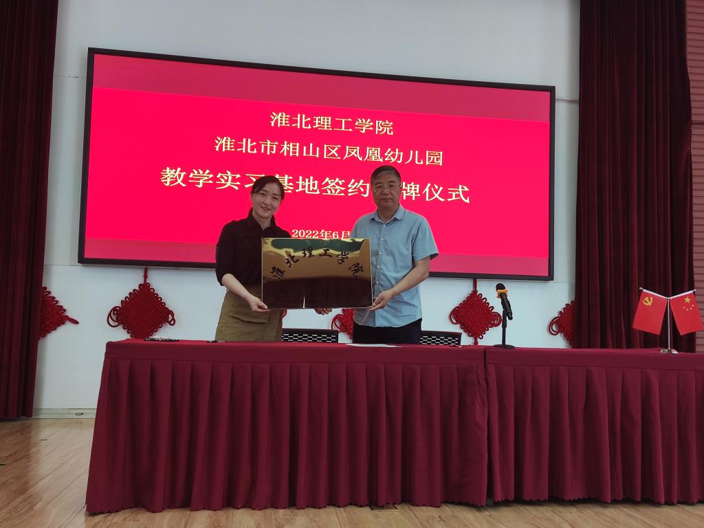 为加强基础教育师资队伍建设,提高淮北理工学院学前教育本科师范生培养质量同时助力淮北地区幼儿园更好地发展,2022年6月9日上午,淮北理工学院牵手淮北市第二实验幼儿园、淮北市第三实验幼儿园、淮北市相山区凤凰幼儿园共建教育实践基地签约暨揭牌仪式在各个幼儿园举行。