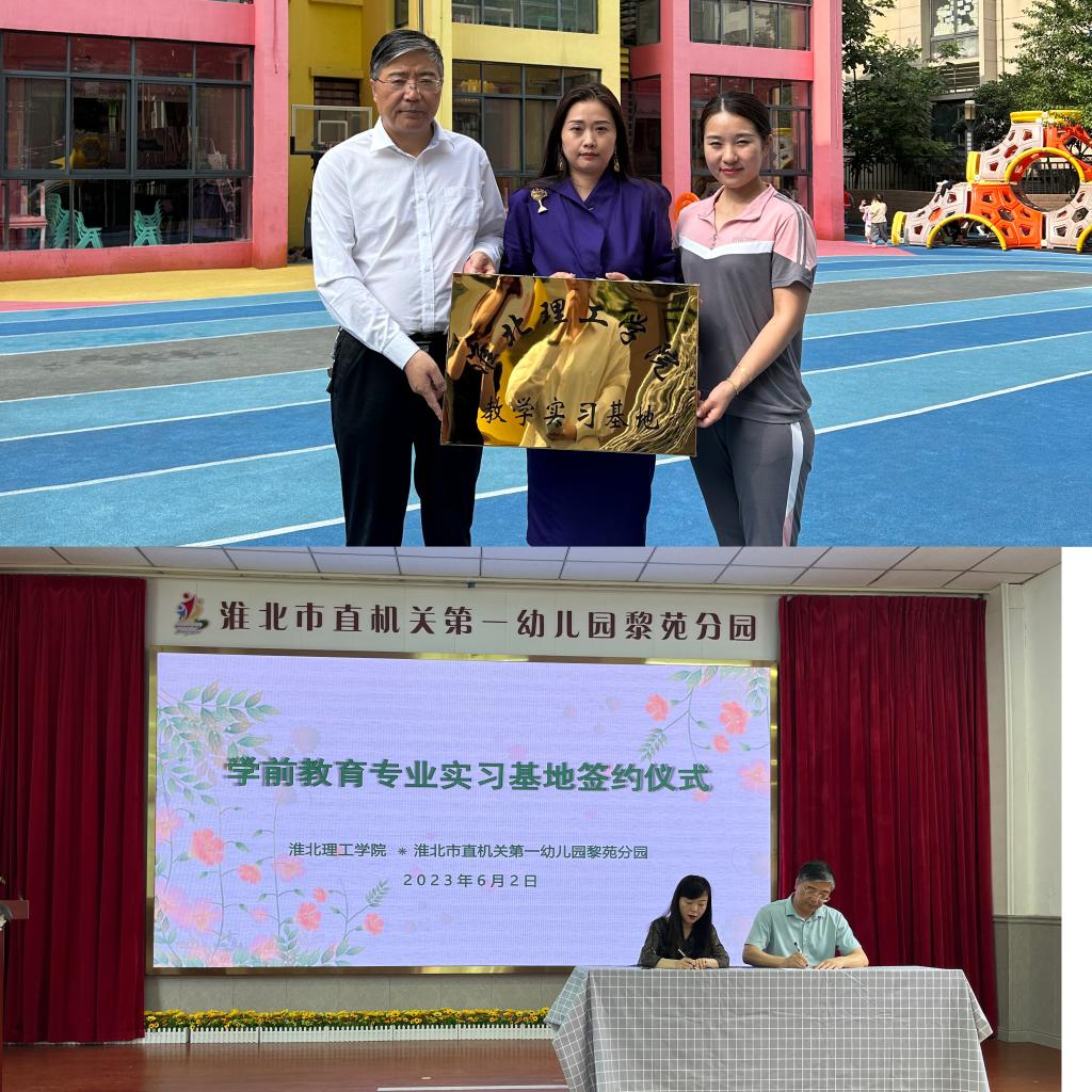 为提升学前教育专业人才培养质量,培养学生实践技能,打造实践育人广阔平台,2023年6月2日上午、6月5日上午,我院来到淮北市直机关第一幼儿园国购分园、黎苑分园、凤凰分园,红缨东渡苑幼儿园、大风车幼儿园、杨柳幼儿园,进行实习基地挂牌签约,建立实践教学基地共建关系。教育学院王家云院长、学前教育教研室负责人尹爽、郗佩佳,各个幼儿园园长以及教师代表出席仪式。