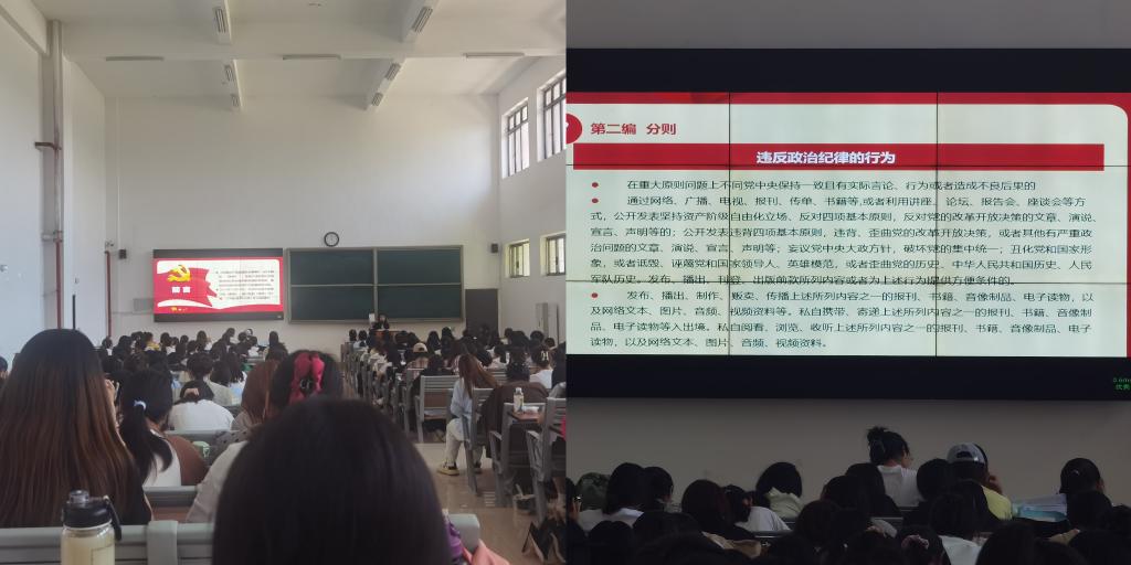 为加强入党积极分子培养教育,引导学生党员深入领会党的纪律规定,严格遵守党的纪律要求,进一步提高自身的思想觉悟和纪律观念。学前教育专业学生第一党支部联合教育学院第五期入党积极分子于5月21日中午在1教121开展党纪学习教育。活动由教育学院学前教育专业学生第一党支部支部书记任子慧主持。