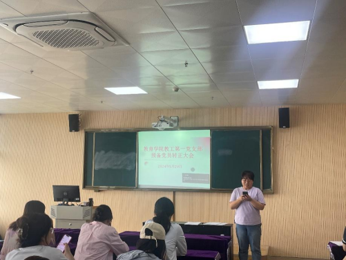 5月29日下午,淮北理工学院教育学院教工第一党支部在艺术楼301教室召开党员大会,讨论潘星、秦琬和仇恒方三位同志转为正式党员的问题,并开展党纪教育。大会应到会有表决权的正式党员24名,实到会21名,到会预备党员4名。