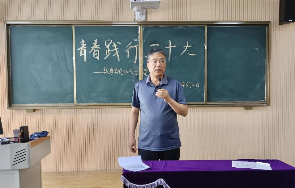 青春心向党,逐梦齐向前。为继续深入学习贯彻党的二十大精神,激励青年学生党员践行入党初心、主动担当使命,教育学院于6月21日在艺术楼301室召开在学生党员大会。学院党总支书记(院长)王家云、支副书记孟向红、各学生党支部书记、全体辅导员老师以及全院学生党员150余人参加了大会,会议学院组织员陈慧慧老师主持。