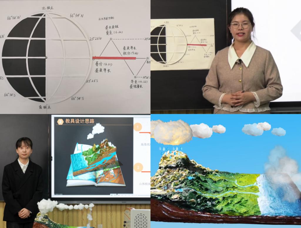 本次教具组比赛中,22级学前教育专升本班钱梦婷的《太阳直射点移动模型》荣获教具组一等奖;21级学前教育本科班华蕾蕾、彭欣然的《水循环地理模型》荣获教具组二等奖;22级汉语言文学本科班倪金星、王雅静的《动植物细胞结构模型》荣获教具组三等奖。