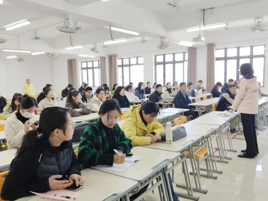 会上,黄莹莹肯定了班主任老师们协助辅导员老师在学生日常教育管理工作的付出与努力,经常性深入学生寝室、学生班级,指导学生学业、考公、考编、考研、科技竞赛等,并介绍了我院近期学生工作开展情况:1、教育学院全体学生宿舍均张贴了信息门贴,便于辅导员和班主任深入学生宿舍精准了解他们的学习、生活状态;2、开学初学生思想动态调研和春季心理健康摸排工作均已完成,需要持续紧密关心关注重点学生群体,做好学生心理健康和安全教育工作;3、要结合学生专业特色开展学业规划指导工作,紧抓学风建设,帮助学生找到明确人生目标,为有考研、考公、入伍、求职等诉求的学生做好指导工作;4、挑战杯课外学术竞赛和学雷锋活动月正在进行中,此类竞赛活动要能够结合学生专业特色做好服务指导。她希望班主任老师们一如既往地与辅导员老师们共同做好学生的教育管理和学业指导工作。