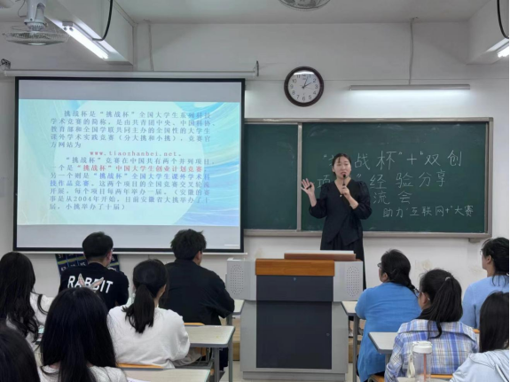 为进一步营造创新创业的良好氛围,提升我院师生创新创业水平,做好2024年中国国际“互联网+”大学生创新创业大赛准备工作,教育学院于5月8日下午,在2教322举办“挑战杯”、“互联网+”、双创项目宣讲暨经验分享交流会活动,活动由学院院长助理王伟杰主持,学院副书记孟向红、团总支书记许海涛、数学与应用数学教研室主任仇恒方、项目指导老师代表及160余位同学参加了活动。