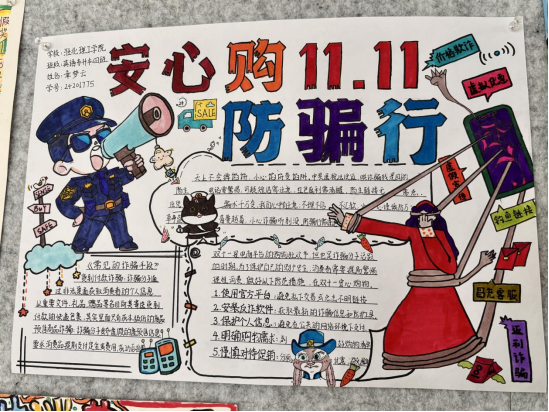 在“双11”来临之际,为增强同学们理性消费的意识,提高预防网络诈骗的能力,教育学院于11月上旬举办了以“理性消费,预防诈骗”为主题的手抄报比赛。本次比赛旨在引导同学们理性消费,保持理性和警惕,避免陷入消费陷阱和遭受网络诈骗,保障个人财产安全。