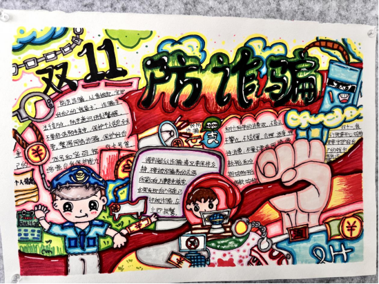 通过此次手抄报比赛活动,正确、理性的消费观念得到有效引导,同学们对网络购物更加理性。同时对网络购物中可能存在虚假促销、价格欺诈等进行了提醒,告知同学们要警惕网络诈骗的各种手段,如假冒客服退款、虚假购物网站、诈骗短信等,同学们增强了自我保护和防骗反诈的意识。