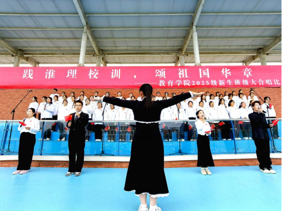 “践淮理校训,颂祖国华章”——教育学院2025级新生班级大合唱比赛圆满落幕