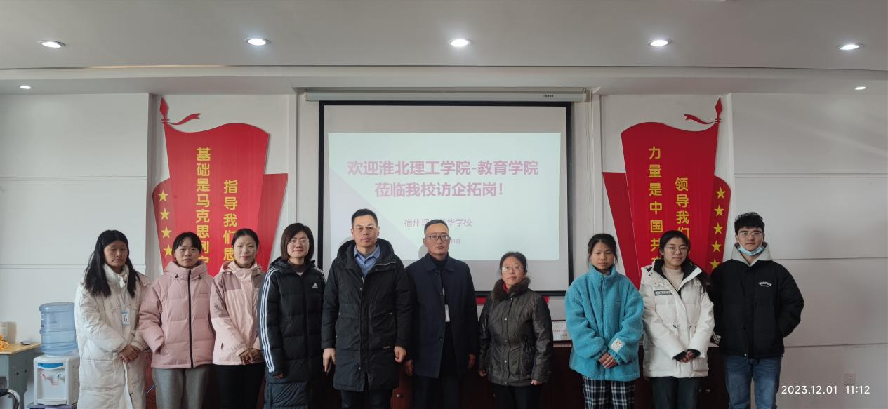 为了加强校地交流合作、拓展毕业生实习和就业渠道,12月1日,教育学院分管副书记孟向红、书记助理黄莹莹、团总支副书记许海涛、2024届毕业班辅导员任子慧,前往宿州现代英华学校开展访企拓岗调研活动。
