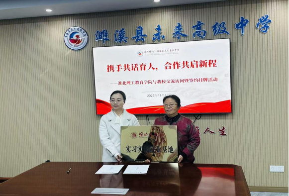 座谈交流结束后,双方举行了简洁而隆重的签约与授牌仪式。王家云院长与濉溪县未来高中龙永娟校长共同签署了教学实习基地协议,孟向红副院长则签署了实习实训就业基地协议,并现场完成挂牌。