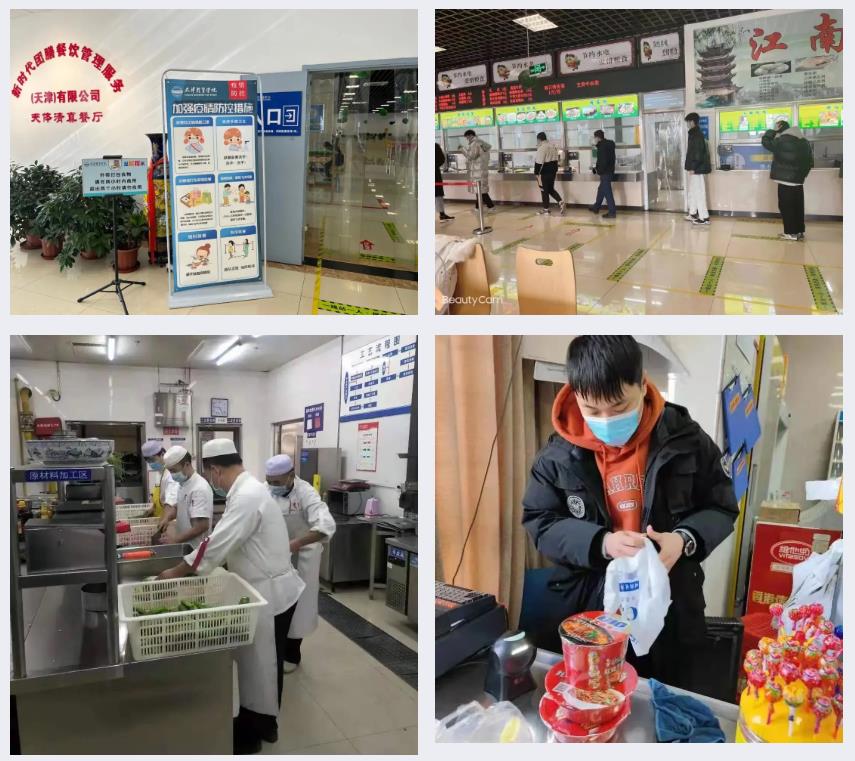 为保障好留校人员一日三餐,餐饮服务人员克服困难,紧急协调各类物资,努力做到餐食荤素搭配,保证种类丰富、营养均衡。从每日餐前饭后的通风、消毒,到工作人员晨午检、毛菜分拣、切配加工等,各个环节均加强安全管理。安排留校人员错峰用餐,用餐时保持距离,让大家吃得放心、安心。校园超市物资储备充足,保证在校师生生活平稳有序。