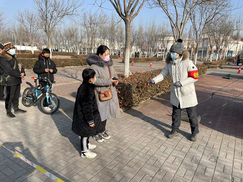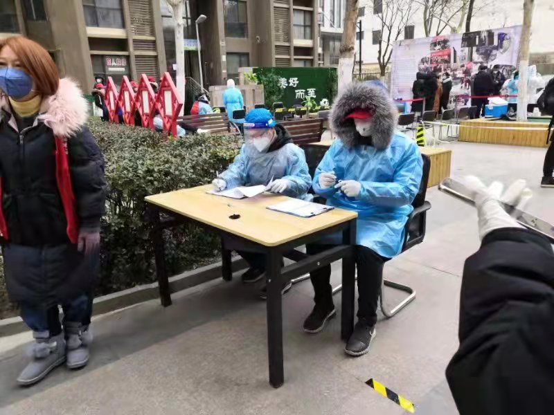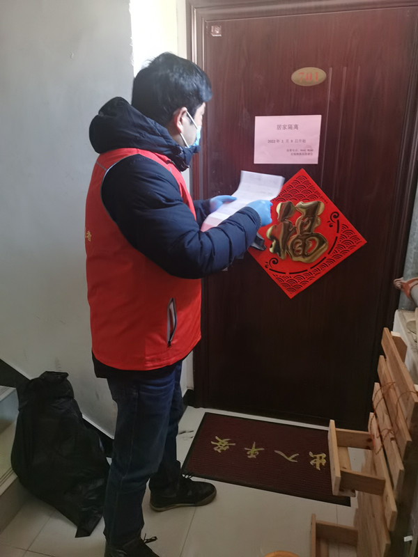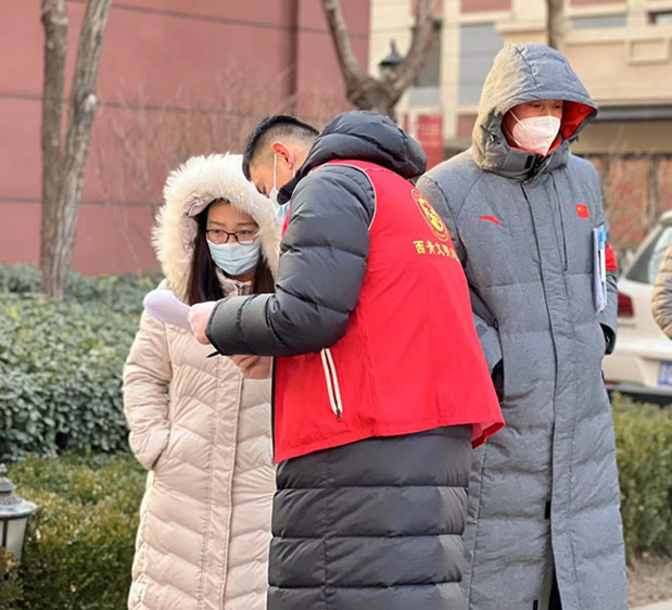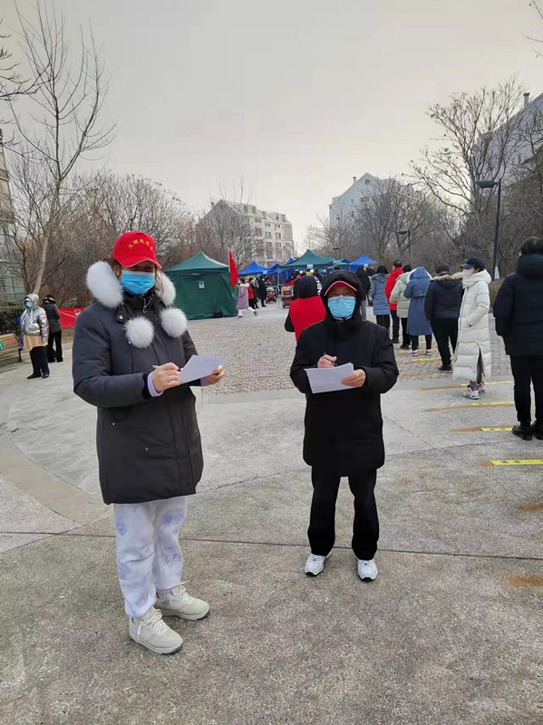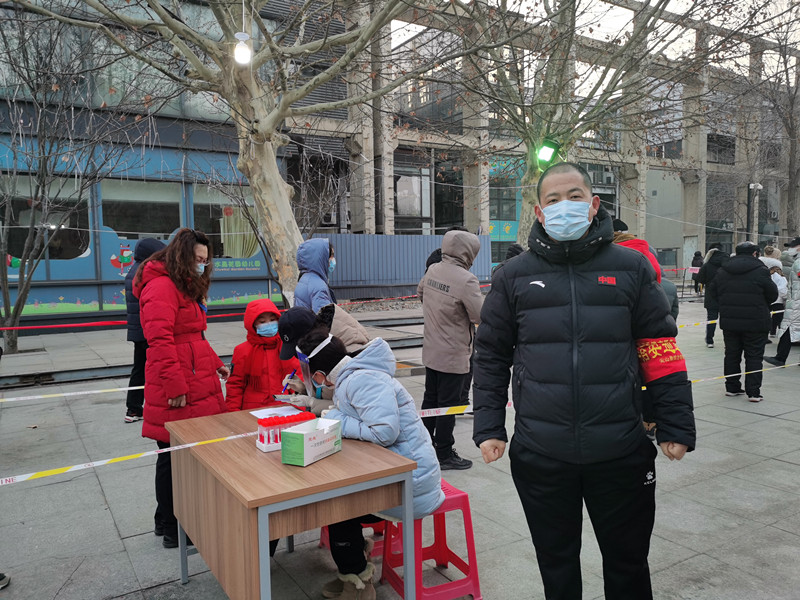 张小刚,运动训练方法与康复教研室教师,在南开区华苑街道碧华里开展居民信息统计、核酸筛查现场疏导、发放核酸检测用具等工作。