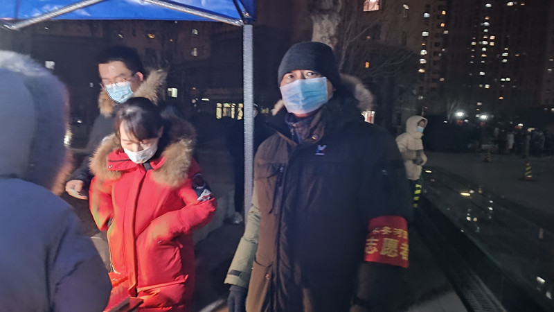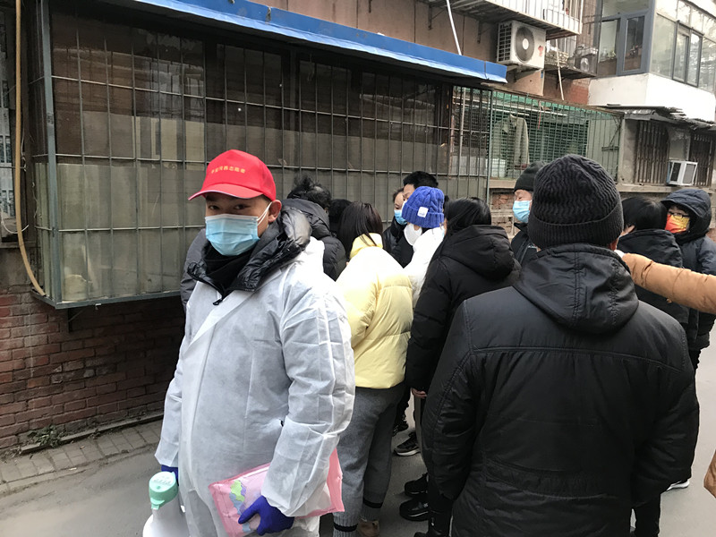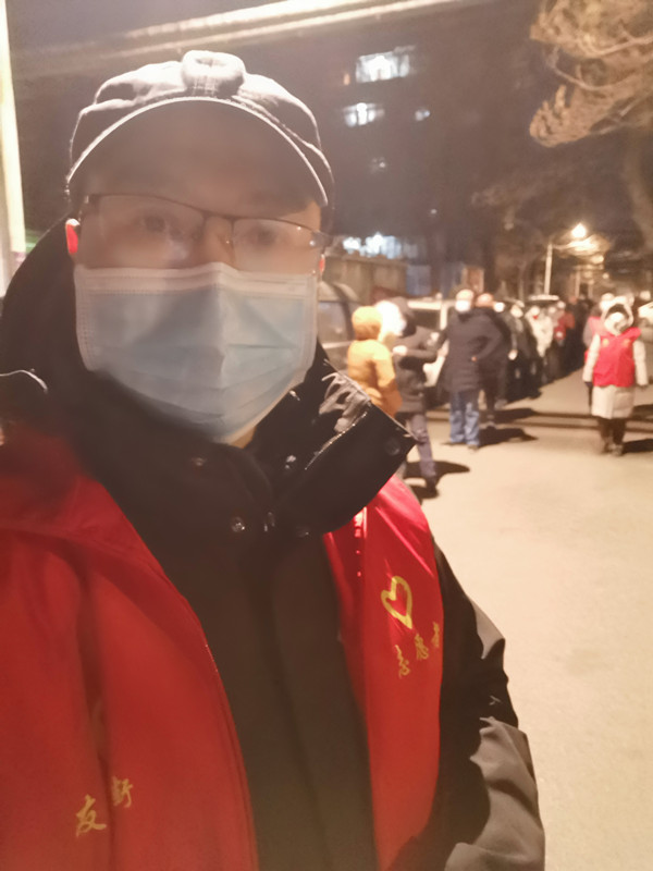 徐大鹏,中共党员,辅导员,在西青区精武镇燕南园社区开展居民核酸筛查登记工作。