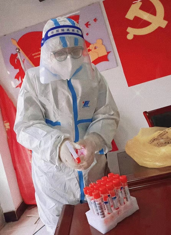 康菲,中共党员,运动训练方法与康复教研室教师,在西青区李七庄街道天房美域社区开展核酸筛查居民信息统计、现场疏导、发放核酸检测条的工作。