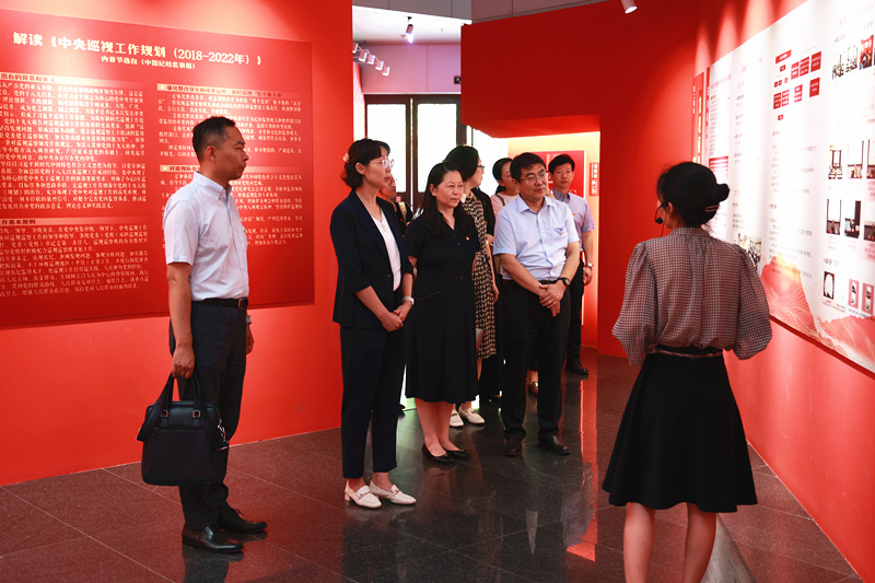 此次主题党日活动共分为沉浸式党课、重温入党誓词、座谈交流三部分。在沉浸式党课教育中,同志们首先参观了“砥砺巡察初心,牢记巡察使命——天津市教育系统巡察教育培训基地暨党风廉政建设教育培训基地”。系统了解我国巡视巡察历史沿革、天津城建大学巡察工作经验做法和巡察成果典型案例,对巡视巡察工作有了更为全面深刻的认识。随后,同志们参观了“革命丰碑——天津市红色旧址展览”。该展览以我市现存红色旧址为主体,精选新民主主义革命时期的100处红色旧址,按照中国共产党成立和大革命时期、土地革命战争时期、抗日战争时期、解放战争时期时间线索分为4个展区,通过旧址测绘展示、多媒体展示、历史地图、三维模型立体展示等方式,讲述了每个建筑中发生的红色故事。通过参观,同志们增强了传承红色基因、赓续红色血脉的责任感和使命感。在展厅一隅,全体同志面向党旗庄严宣誓,表达了不忘初心、牢记使命和对党忠诚、永远奋斗的决心。最后,我校与天津城建大学统战部、巡察工作办公室相关部门同志开展了交流座谈。双方就统一战线、机关党建、巡察等工作进行了深入交流和探讨。
