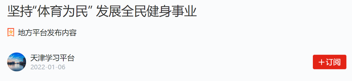 1月6日,“学习强国”天津学习平台以“坚持体育为民 发展全民健身事业”为题,刊发我校谭思洁教授课题组调研成果。该调研成果为天津市社科联“千名学者服务基层”活动入选项目,收入《思想的力量——新时代党的创新理论天津实践》一书。