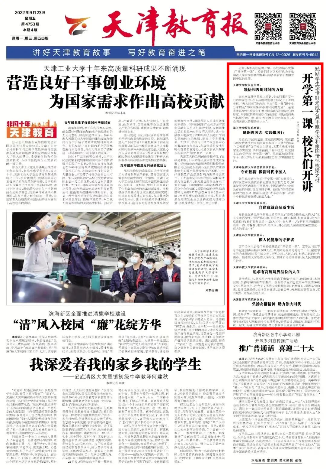9月23日,《天津教育报》头版报道我校新学期开学第一课,现全文转载。