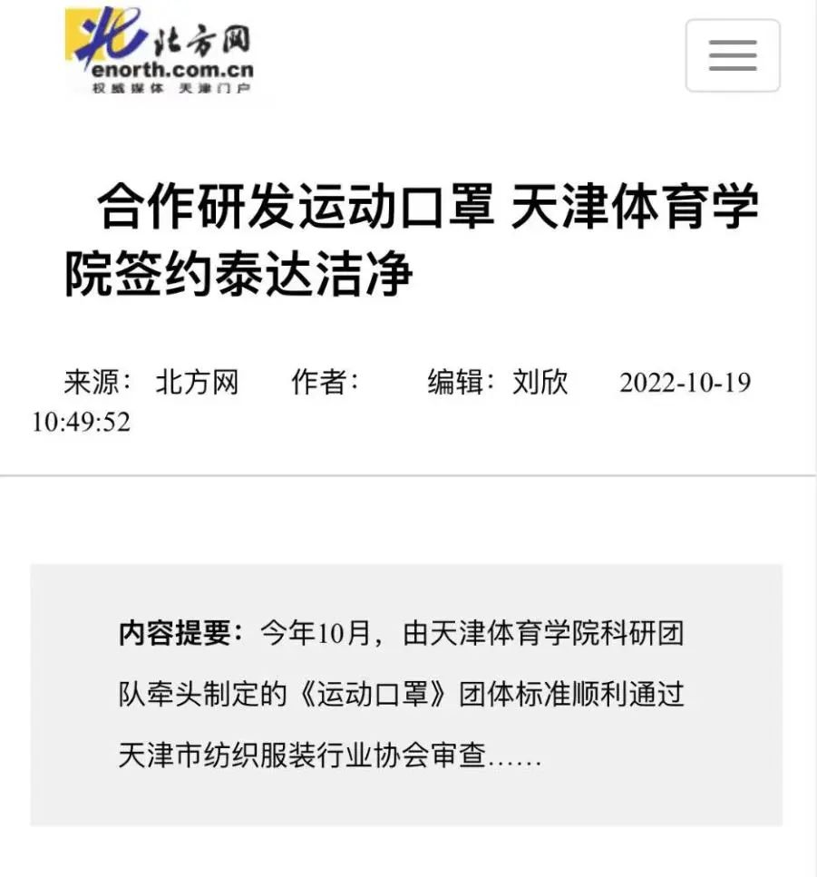2022年10月18日,天津体育学院与天津泰达洁净材料有限公司产学研项目签约仪式在我校团泊校区乒羽馆举行。连日来,北方网、津云、《天津教育报》等我市主要媒体对此进行了报道。