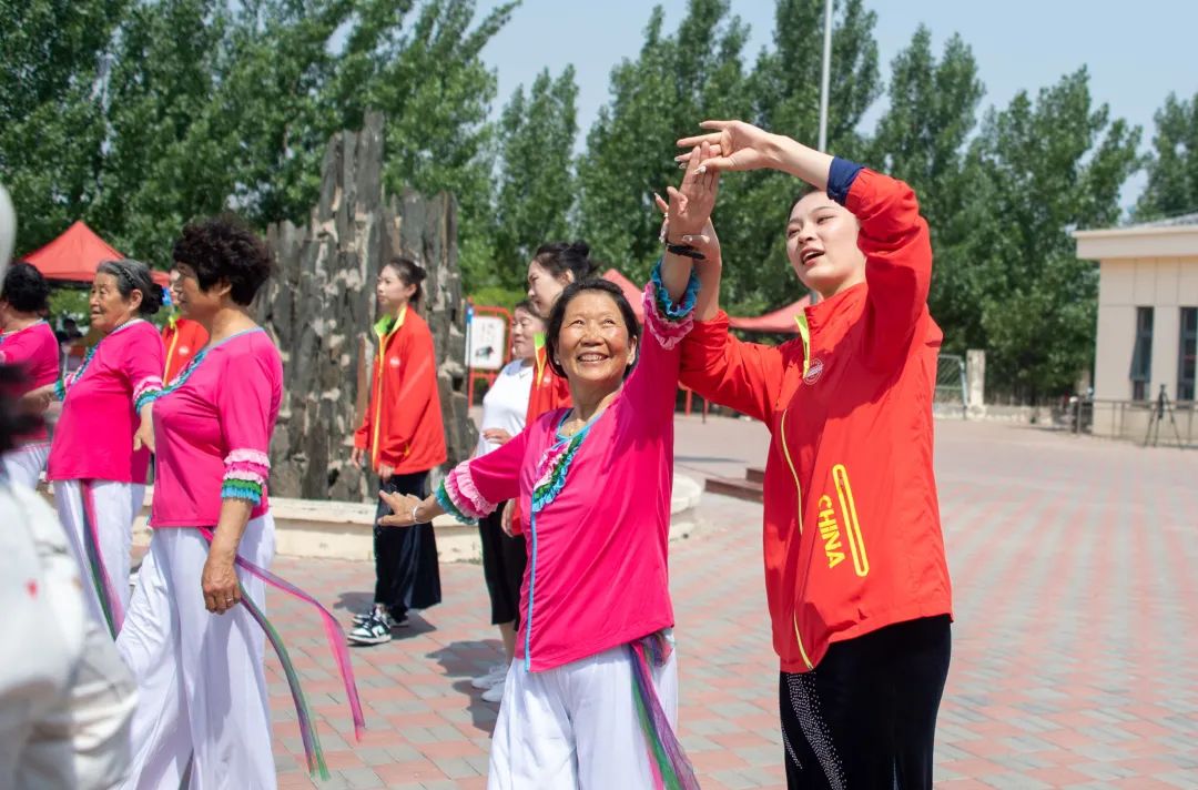 为高质量开展好学习贯彻习近平新时代中国特色社会主义思想主题教育,助力乡镇社区居民养成科学合理的体育运动习惯,全面提高人民群众身体素质,近日,天津体育学院师生赴静海区大丰堆镇后明庄村,参加由市政协组织的“为群众办实事”活动。活动中,天津体育学院传媒与艺术学院师生,向村民展示了师生创编的传统傣族舞蹈《陶醉了》,并对村民自排自练的秧歌舞等舞蹈进行专业指导。