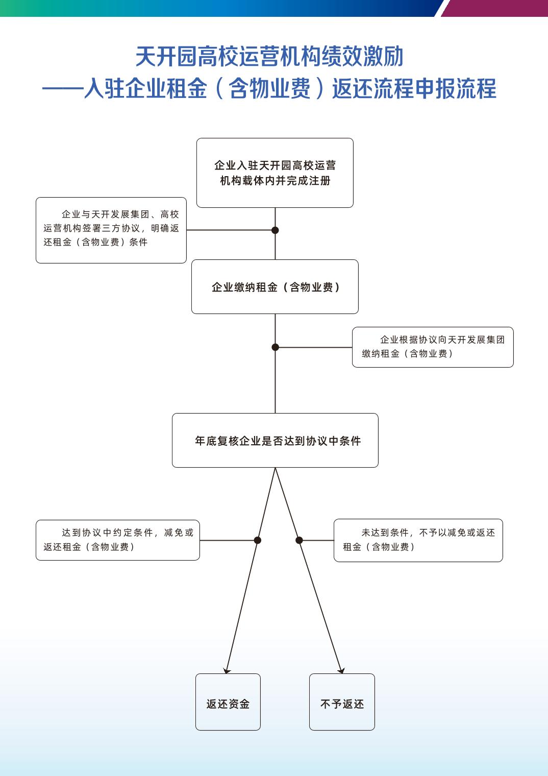 【一图读懂】17.天开园高校运营机构绩效激励实施细则(试行)——入驻企业租金(含物业费)返还流程