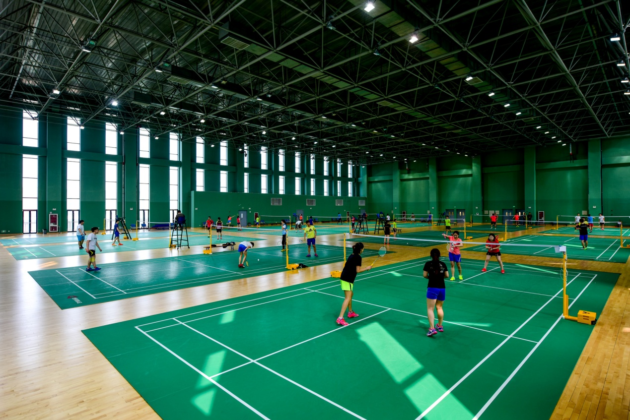 羽毛球馆建筑面积7277平方米,场地面积4580平方米。两个球馆,共24片标准场地,地面铺设地胶,馆内有良好的灯光照明、暖气、空调设备设施齐全,附属设施包括:贵宾室、淋浴室等,可承接各类羽毛球项目比赛和健身活动