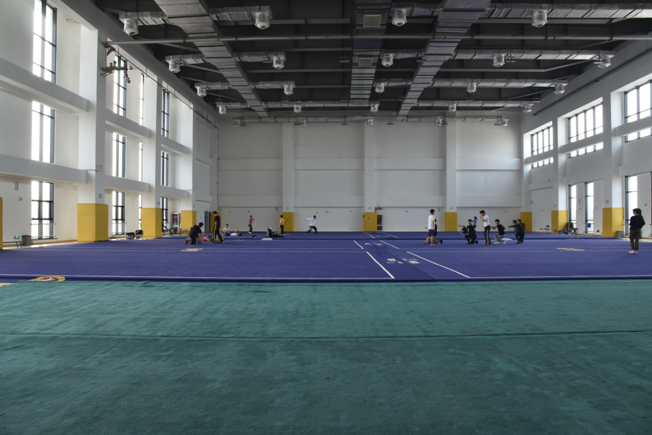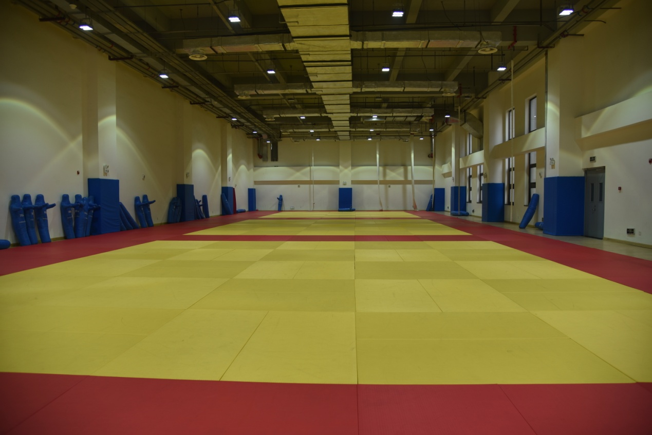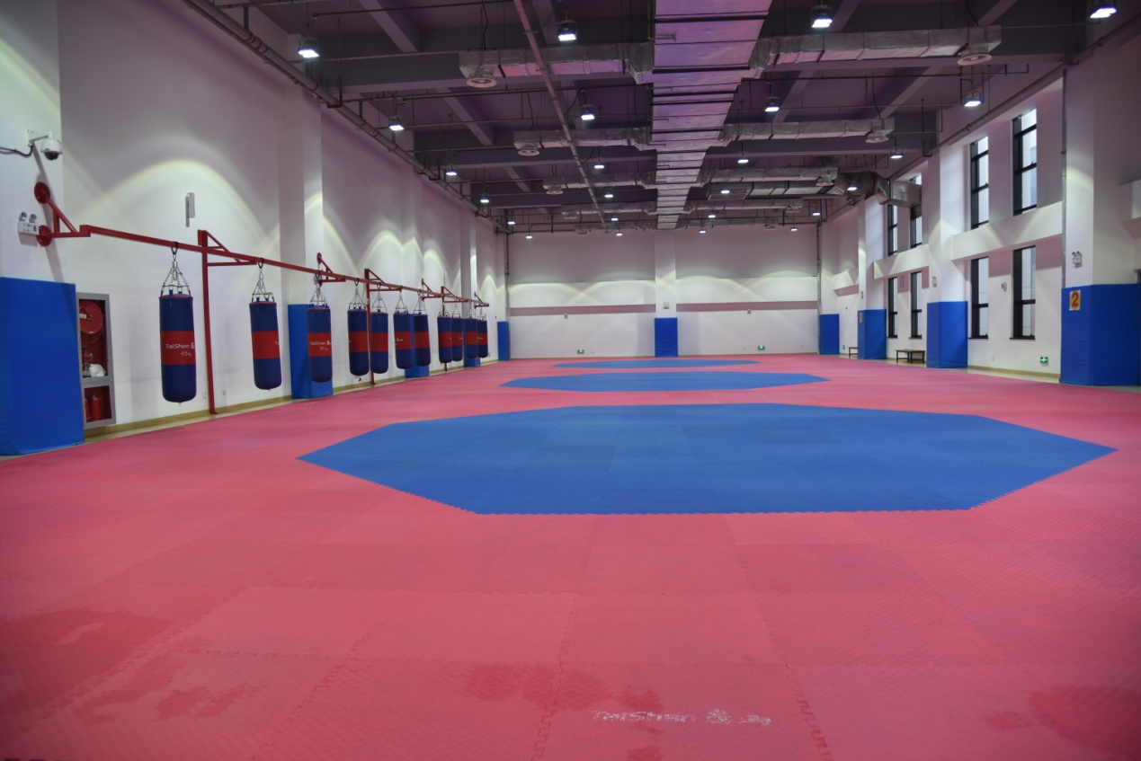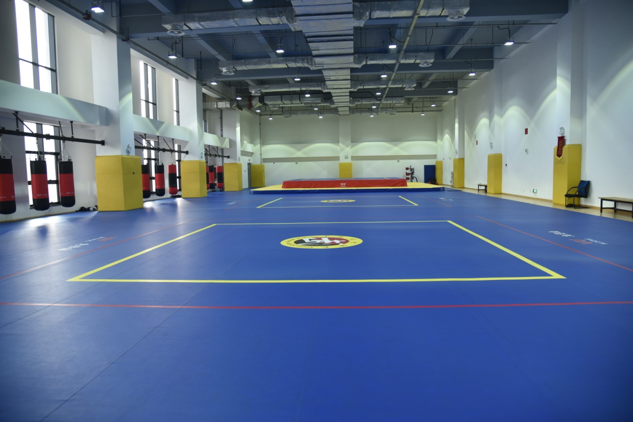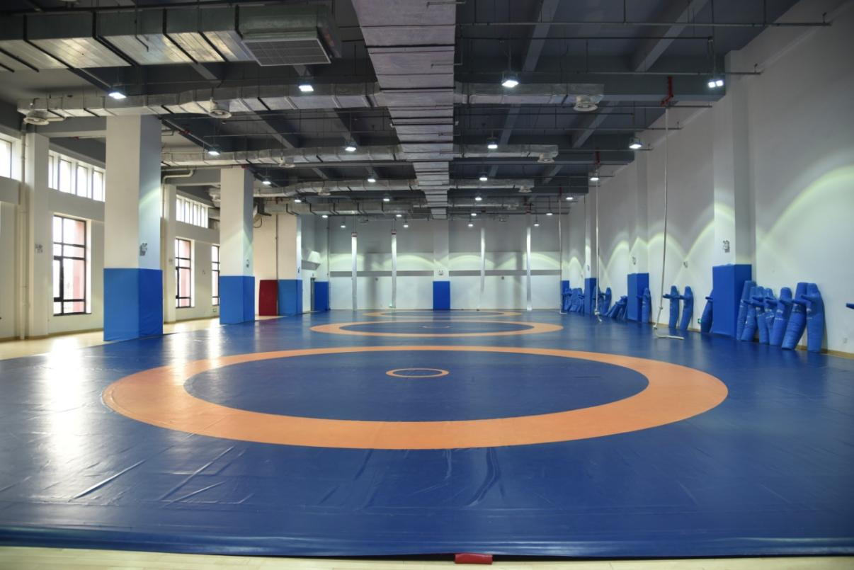 武术重竞技馆建筑面积24593平方米,场地面积11143平方米。包括武术馆、摔跤馆、柔道馆、散打馆、跆拳道馆、健美操馆、啦啦操馆、琴房、舞蹈馆、体育舞蹈馆、音乐教室、竞技体操馆、艺术体操、体操馆,场地均铺设专用地垫等。目前主要用于教学、训练,可承接各类比赛活动