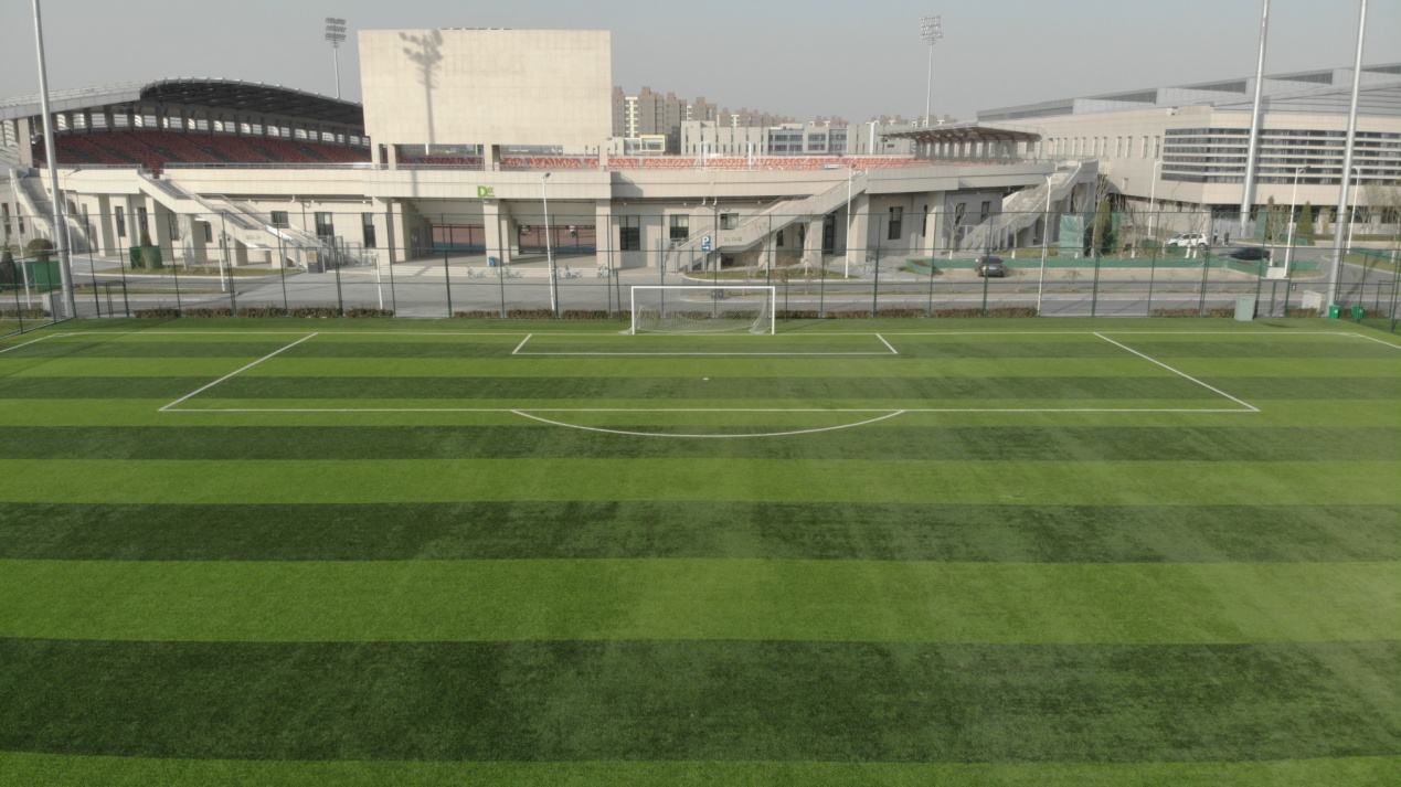 8431平方米,共有二块人造草皮标准场地,目前主要用于教学、训练,